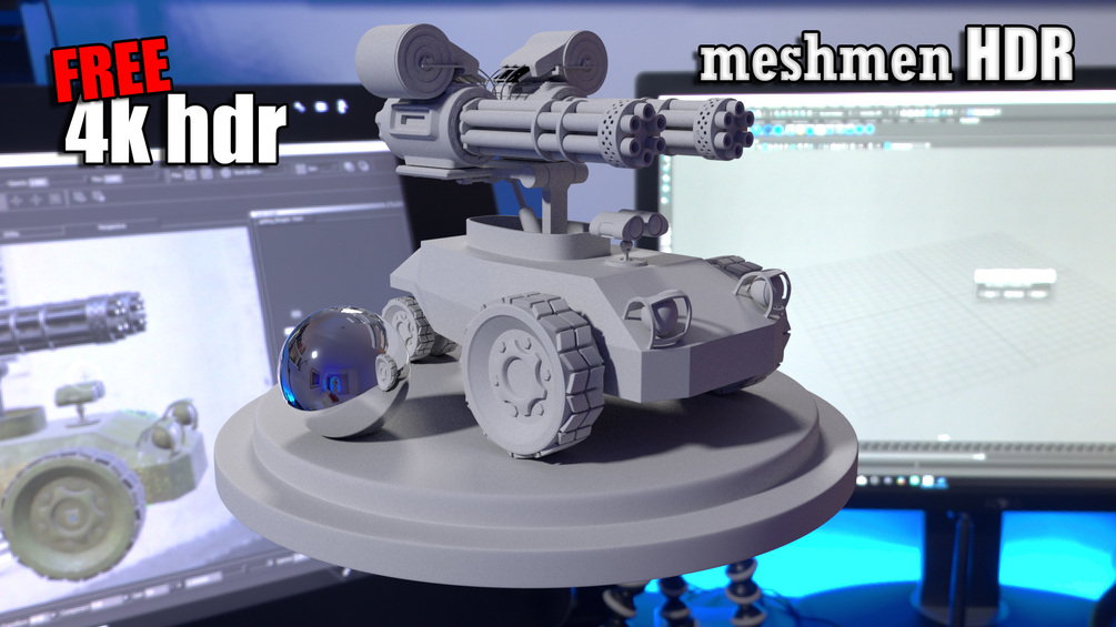 Meshmen studio HDR for rendering. Free to use anywhere and commercials, I would be happy if you give a shoutout if you do use it somewhere. Happy Rendering!